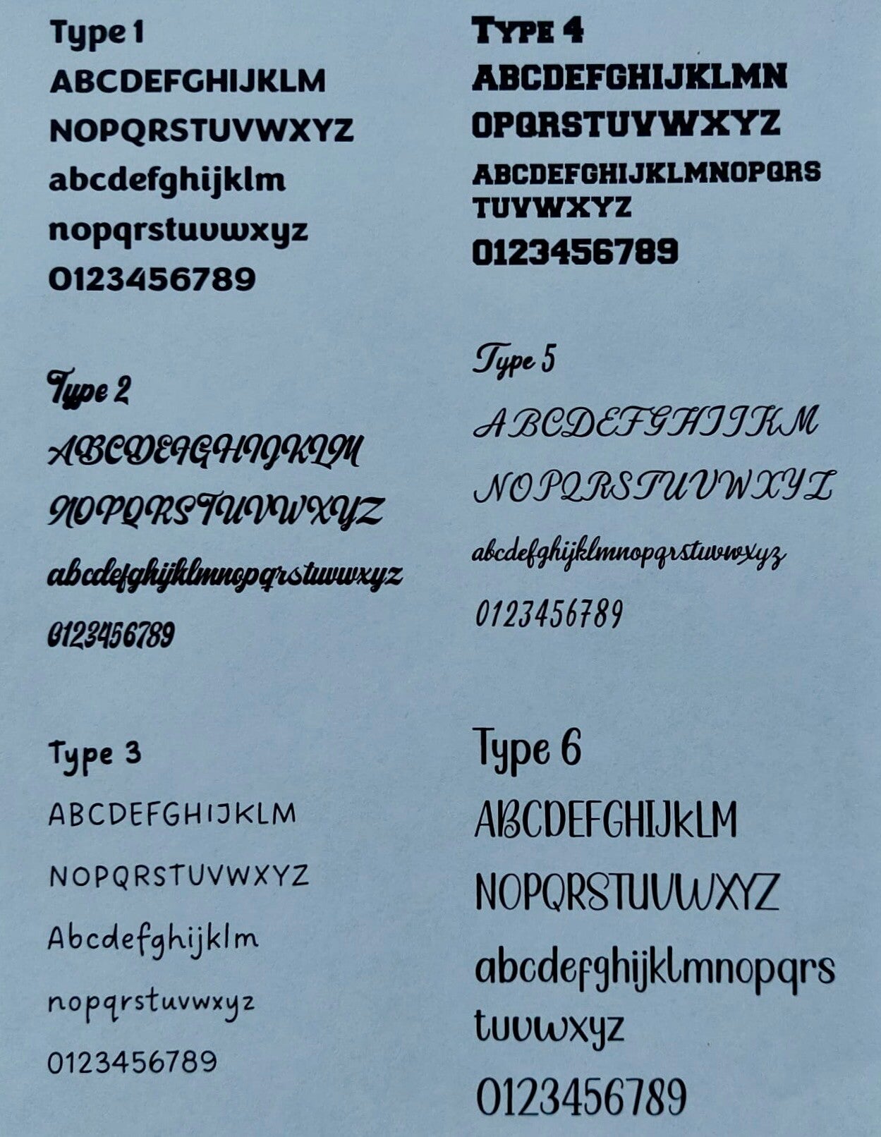 Het lettertype (1 tm 9) kun je in de afbeeldingen hieronder uitzoeken.